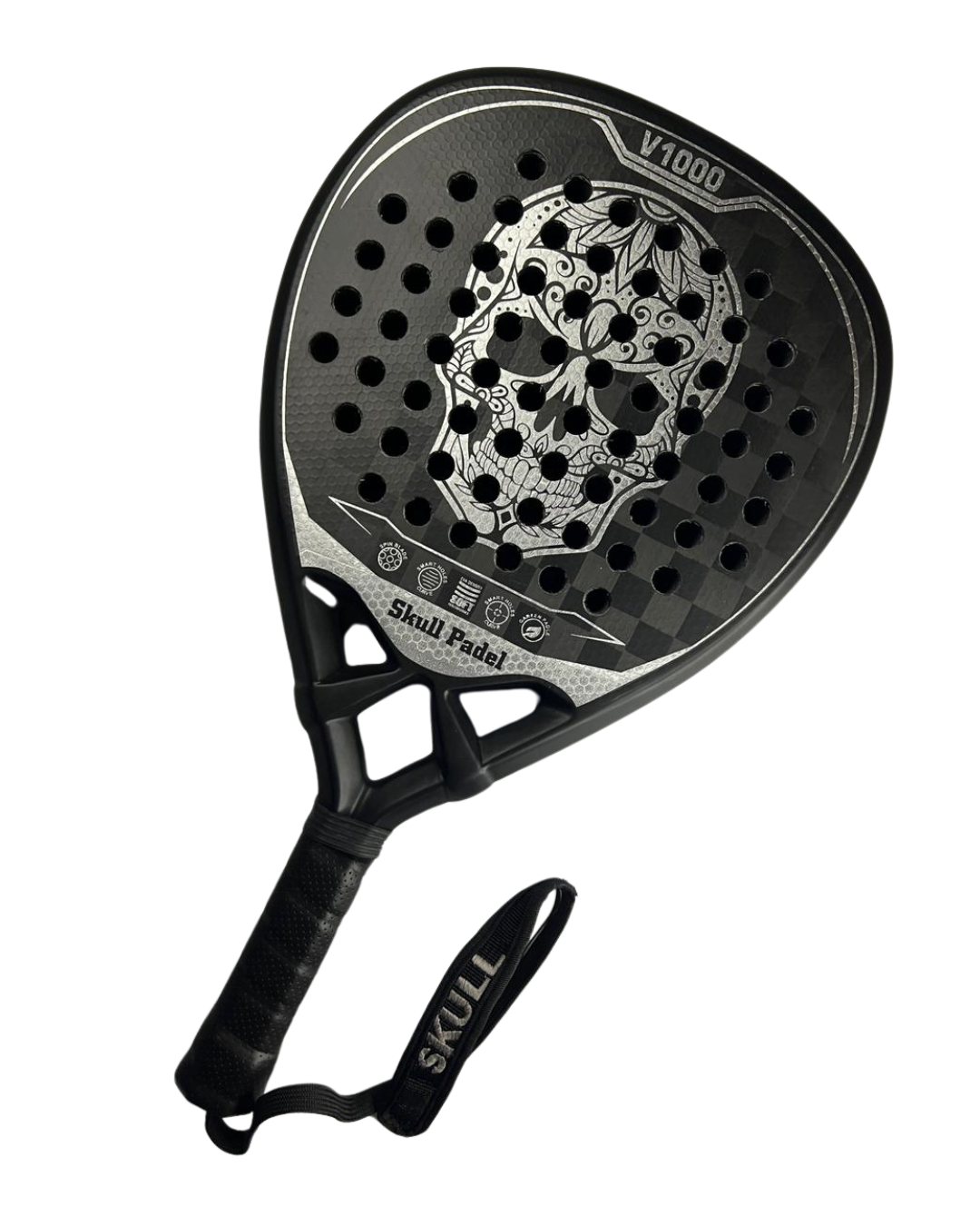 Unleash your game with the Skull Padel V1000 ShadowStrike—a performance-engineered padel racket designed for players who demand power, precision, and attitude. Featuring a high-density carbon surface, optimized hole layout, and a striking engraved skull design, it delivers explosive shots with maximum control. The ergonomic grip and wrist strap ensure comfort and stability even during intense rallies. Built for players who dominate the court with style.